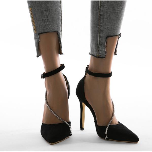 Customized OEM Women Pointed Toe Pumps Crystal Glitter Square Buckle Images |